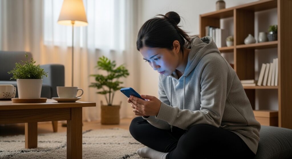 暖かい部屋では、ついスマホや座り姿勢が長くなりがちです。